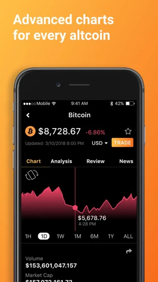 With our easy to use app design you can easily view Bitcoin ticker, Blockchain assets, Crypto prices, and review cryptocurrency charts. Build a bitcoin trading strategy that will help you trade effectively on bitcoin exchanges such as Coinbase, GDAX, Binance, Bitstamp and others.
