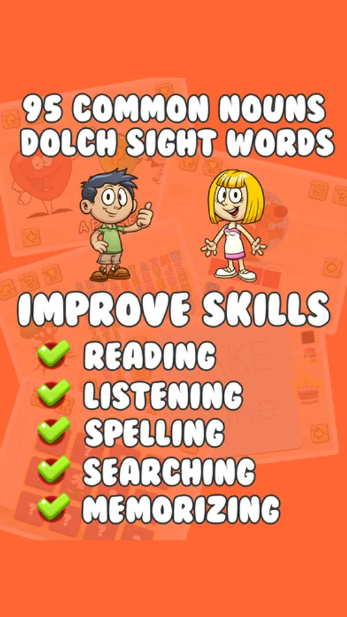 Every starting readers have to build up skills that enable them to be a strong and also confident reader. As a result, this application assist beginning readers to be capable of determine words instantly and also have an efficient technique for decoding unknown words that we called 95 Common Dolch Noun Sight Words. Sight words tend to be important to reading not just because they are used so frequently, but also because most of them cannot simply be sounded out. This app present various sight words teaching strategies and techniques as following : listening, reading, spelling, tracing, word searching and memorizing.
