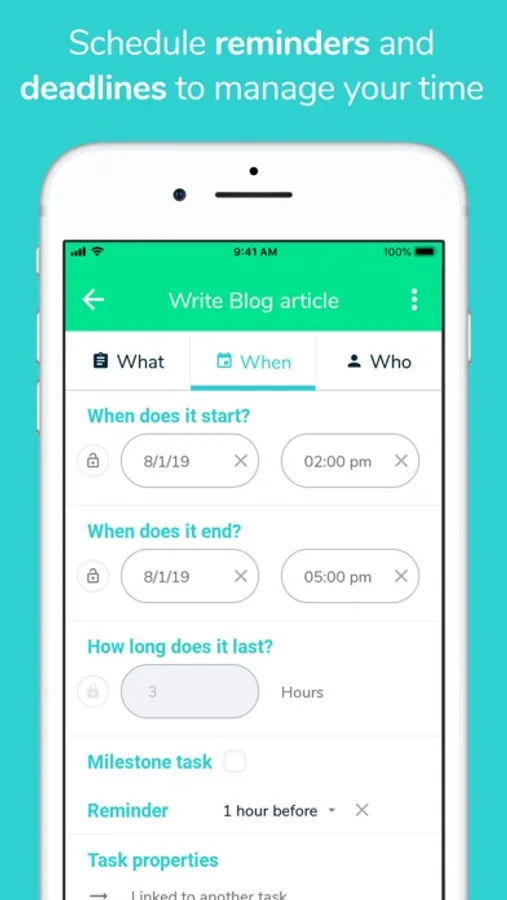 Share files, work together on projects and assign tasks to others with the shared schedule. You can create an unlimited number of members. Work collaboratively and save time with Beesbusy.