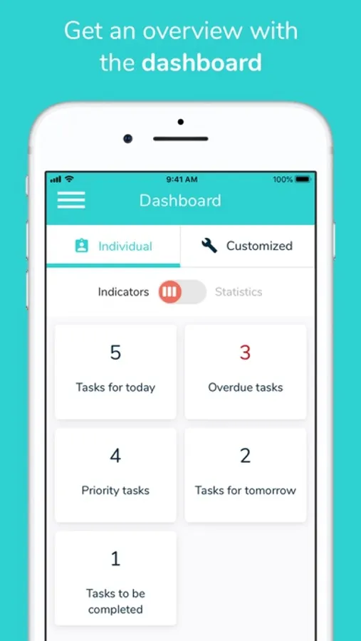 Number of tasks to be completed or overdue, tasks for today, statistics... the Beesbusy dashboard summarizes all your data at a glance.
