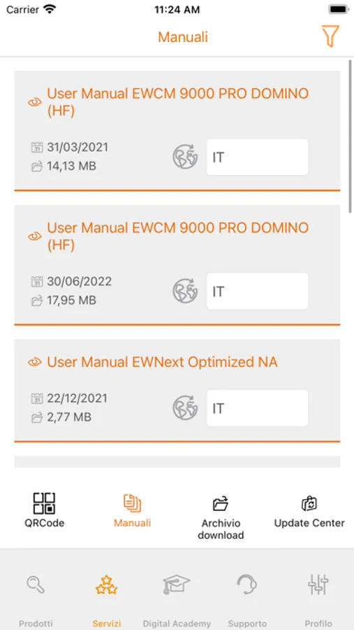- Possibility of filtering the manuals present by product family and language