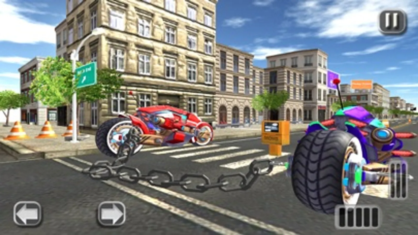 Nitro cars & hot bike parking & racing along with tuk-tuk rickshaw racing, are moving towards trendy monsters match mania. Such as playing all new raging chained cars games these days. However, now is the time to be the Chained bike rider in Chained Bikes 3D: Tron Rider, after trending motorcycle robot car & sci-fi bikes racing. So get hands on high tech scifi bikes that are joined together or chained with 6x6 Prado, hummer & high tech Bugatti and set off for tricky motobike race performing tricky bike stunt. Race motobike through offroad city tracks breaking chains & performing freestyle stunts with twisty wheel & become crazy citybike rider turbo champion.
