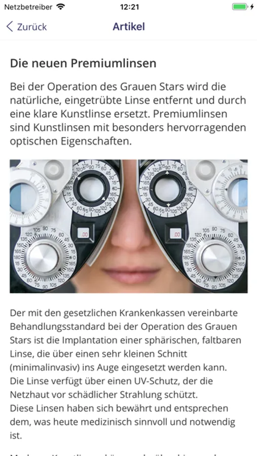 Visual eins ist ein Medizinisches Versorgungszentrum für Augenheilkunde in Niedersachsen und Nordrhein-Westfalen. Das Herzstück des Unternehmens ist der Standort am Klinikum Osnabrück. Hier befindet sich auch unser OP-Zentrum für ambulante Augen- und Laserchirurgie. Diese App informiert die Mitarbeiter, Partner und Patienten von visual eins umfassend über Neuigkeiten unseres Medizinischen Versorgungszentrums.