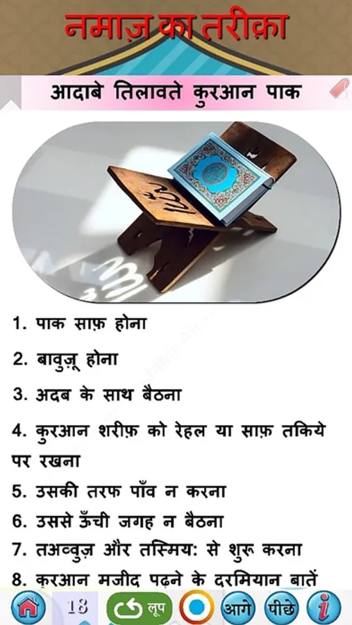 This application legitimately portrays the manners and right method for performing "Namaz". App Content is verified by Mr. Shadab Ansari, Hafiz Muhammad Nauman, and Qari Muhammad Tahir Bashir. This is "namaz in hindi" app.