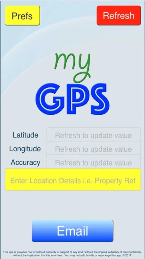 The purpose of this tool is to get the GPS Coordinates for Latitude and Longitude of current location and email it to a predefined email address. Default Username and Email can be set in Prefs.