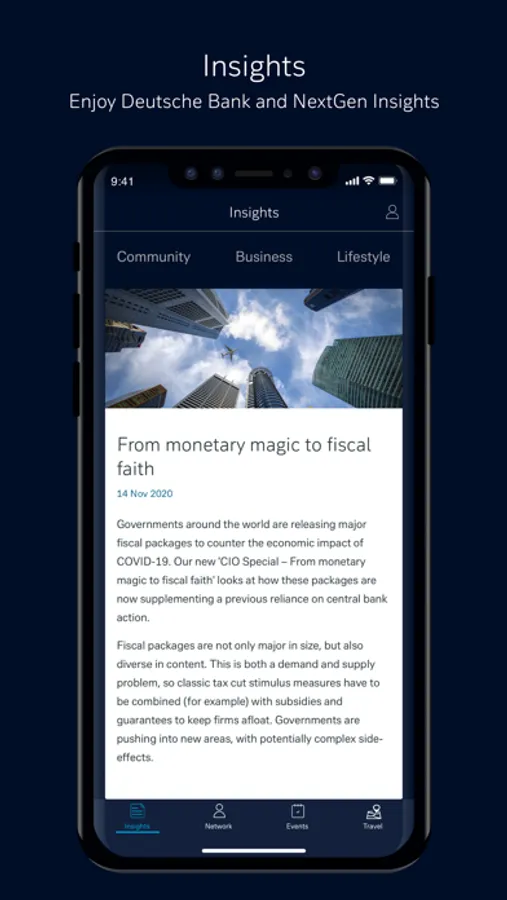 The app will act as the go-to interface that transparently communicates our NextGen offering from flagship events to tailored topics of interest for this exclusive network.