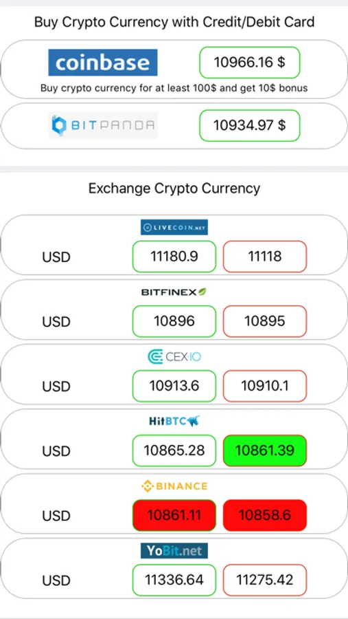 Compare prices from the biggest cryptocurrency exchanges in real time in one page with edge 2 edge design for the biggest view ever!