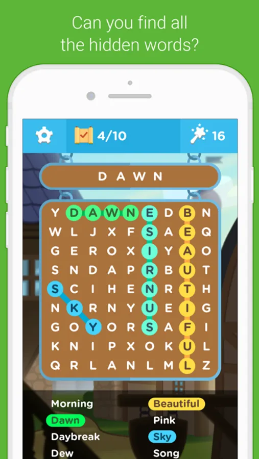 Word Find is a word search puzzle game. This colorful and fun game also teaches related words.