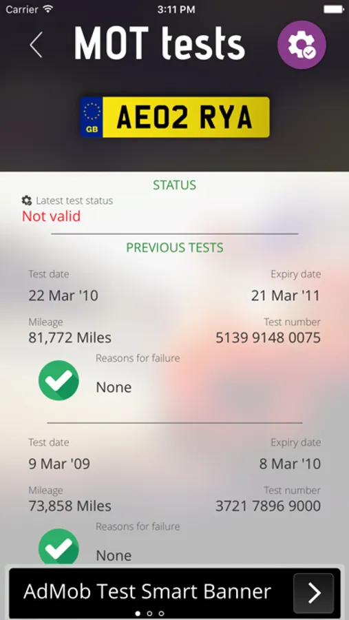 • Vehicle status (Road tax status, MOT status, expiration dates).