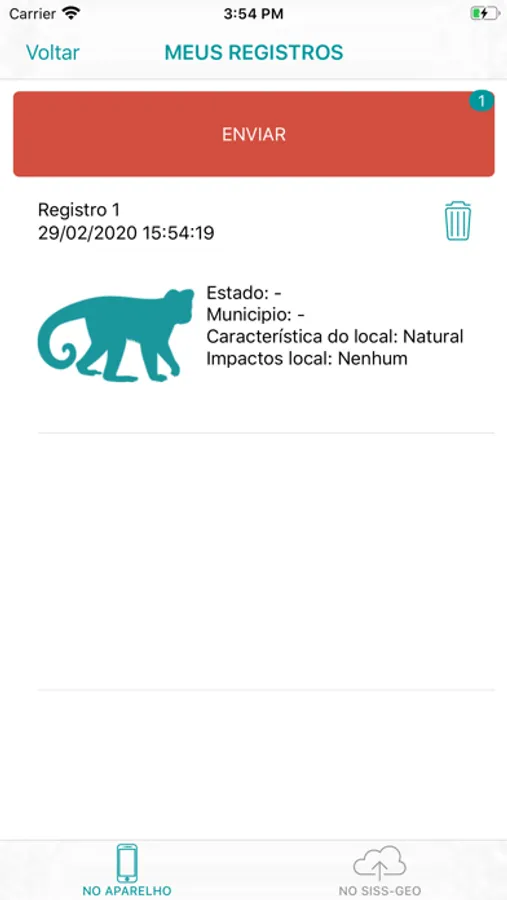 - Envio de informações sobre os animais, sua localização, características do ambiente e fotos.