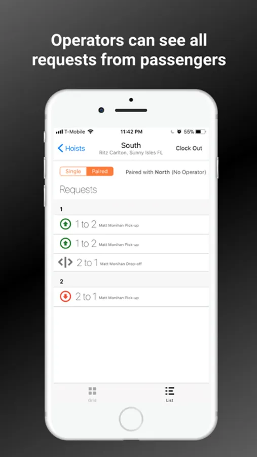 With the Hoyst app, operators of your construction job site hoists can take requests from passengers on their iPhone or iPad.