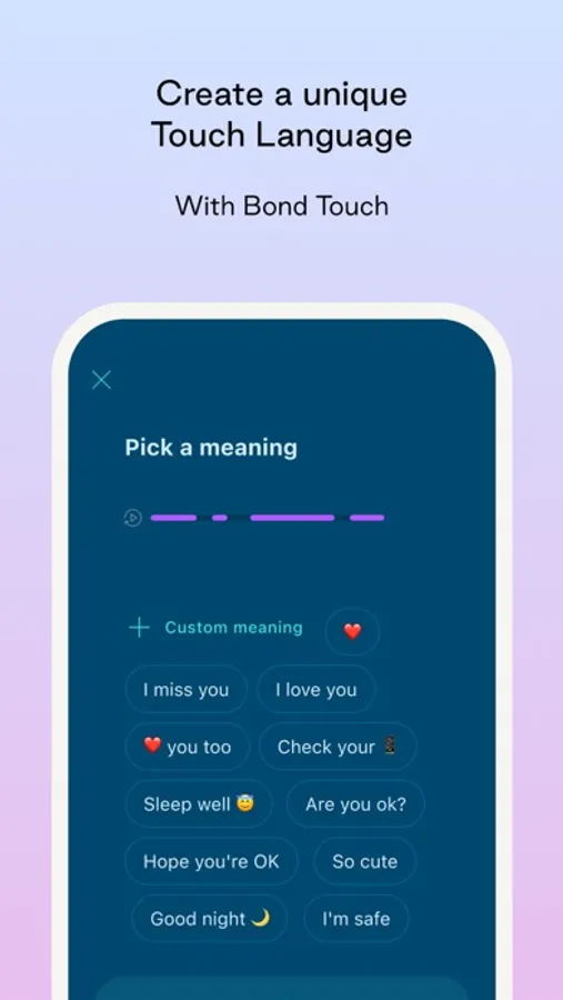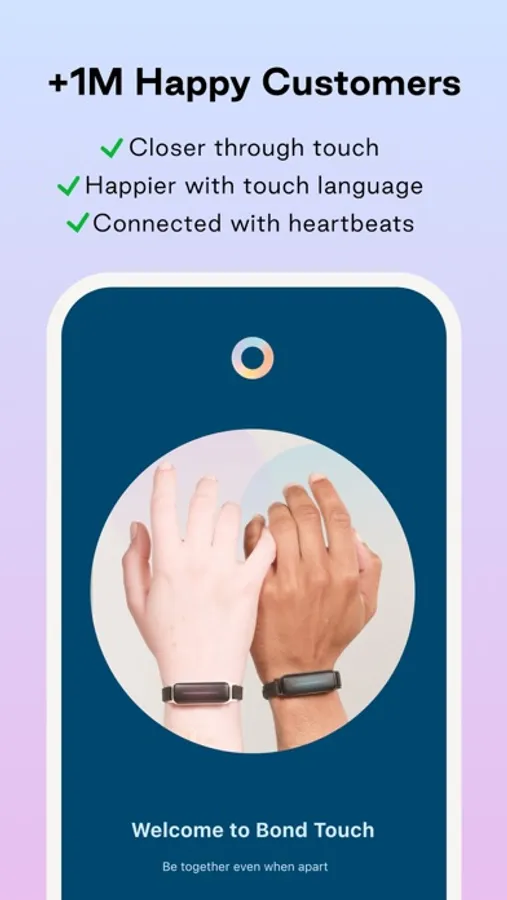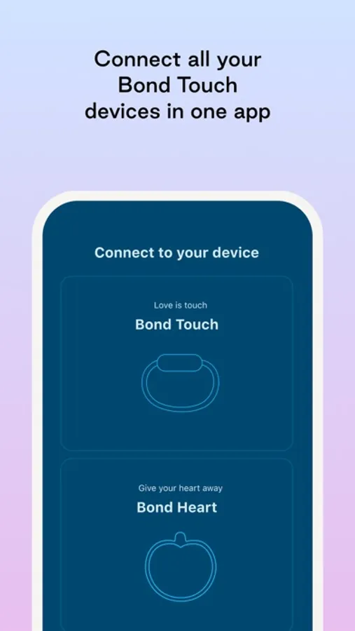 Bond Touch is the app that supports the Bond Touch and Bond Touch More bracelets - the bracelets that keep loved ones connected through touch, and Bond Heart - the pendant that lets you feel your loved ones heartbeats wherever you are. With a simple tap, your love feels a gentle vibration and sees a light through their Bond Touch bracelet that lets them know you are thinking of them, no matter where they are on the planet. Holding gently your Bond Heart pendant let's you feel heartbeats stored within the app's heartbeat library.