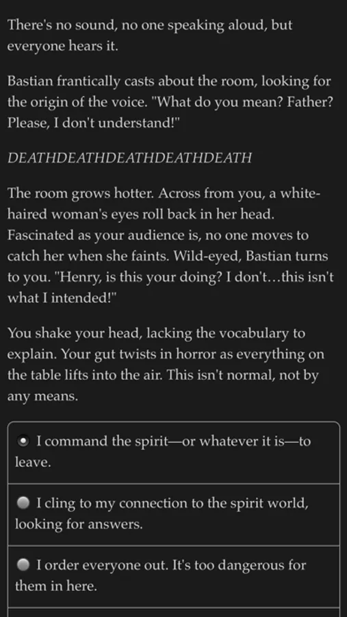 "Heart of the House" is 360,000-word interactive Gothic novel by Nissa Campbell. It's entirely text-based—without graphics or sound effects—and fueled by the vast, unstoppable power of your imagination.