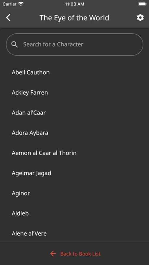 Read about any character's history up to the chapter you're on! Simply select a book, search for a character, and tap on the chapter they appear in.