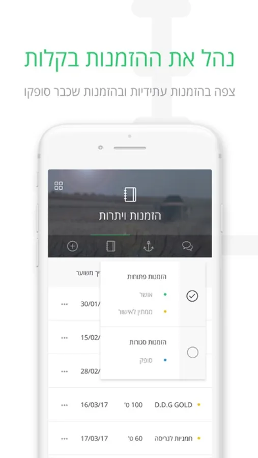 צפה בהזמנות עתידיות ובהזמנות שכבר סופקו