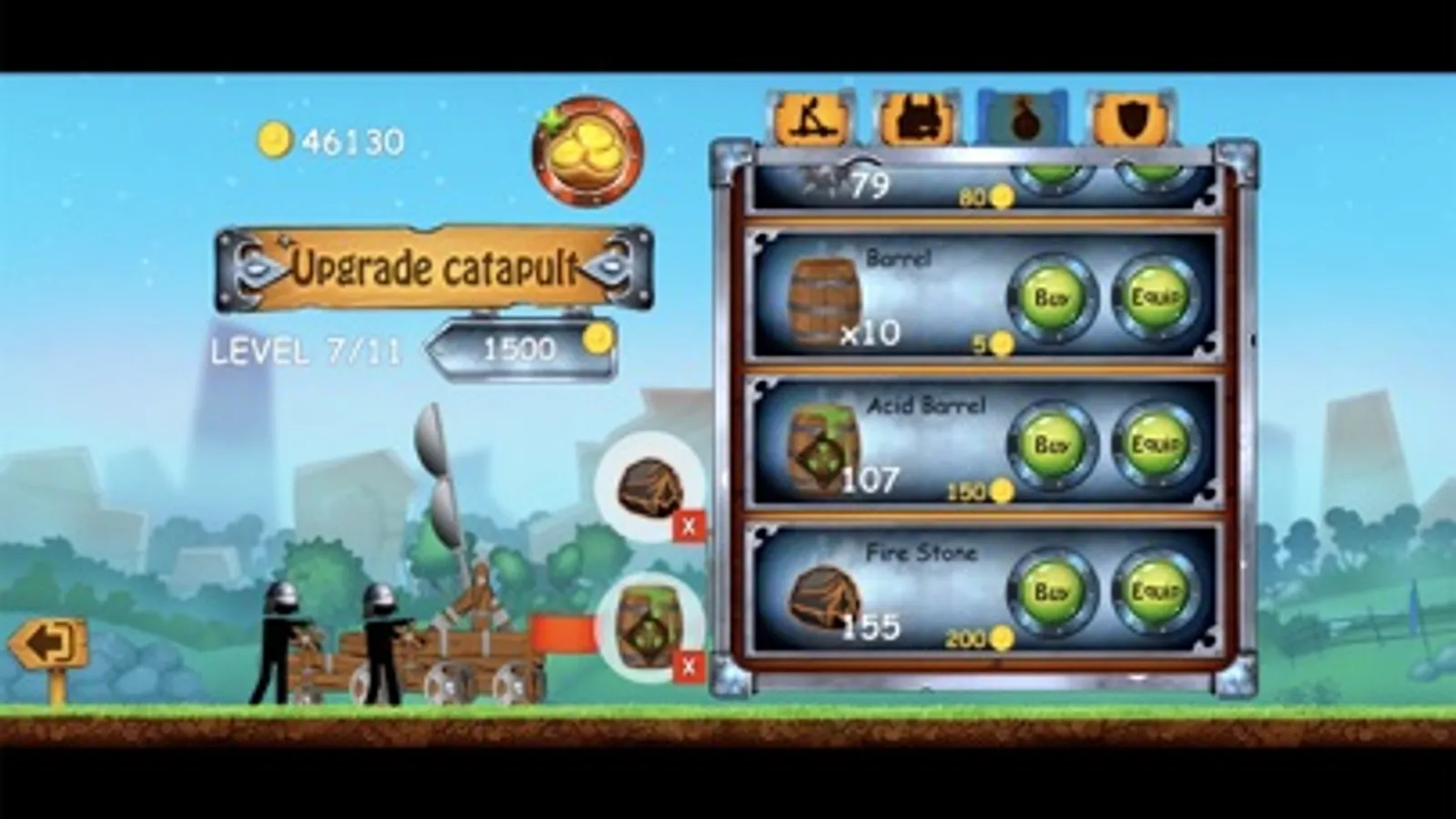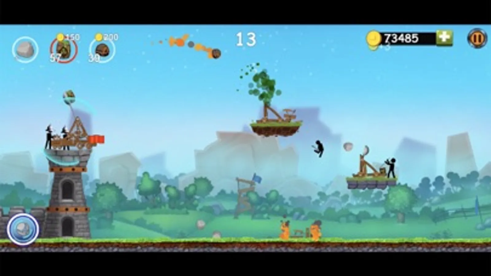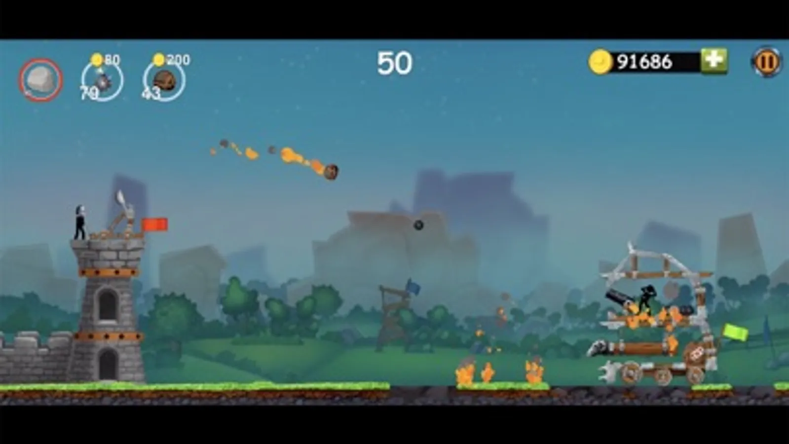 The game has a simple intuitive control. Tap on the screen and pull to charge the catapult and select the tension force. Release to launch the projectile into the enemy.