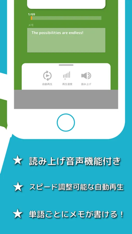 ・付箋・ブックマーク機能付きで、覚えにくい単語は何度も練習できる