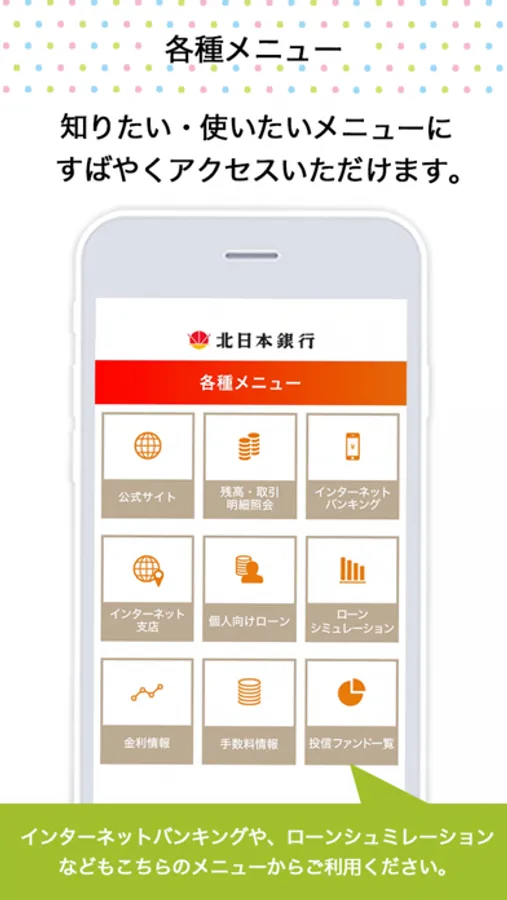 アプリでかんたん・安心!残高・取引明細照会。北日本銀行から残高照会および入出金明細照会をより便利にご利用できるアプリが登場です。