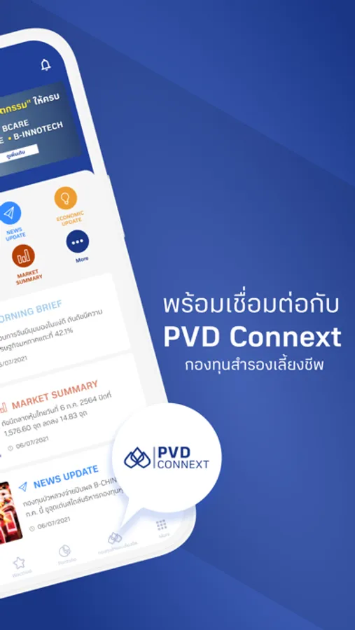 ฟีเจอร์ PVD Connext ถูกพัฒนาและออกแบบภายใต้คอนเซ็ปต์ “All-in-one สะดวกครบ จบในที่เดียว” เพื่ออำนวยความสะดวกแก่สมาชิกและคณะกรรมการกองทุน ทั้งในมิติของการทำแบบประเมินความเสี่ยง การเปลี่ยนแปลงทางเลือกการลงทุน การติดตามข้อมูลผลการดำเนินงาน รวมถึงการเข้าถึงข้อมูลต่างๆ ที่เกี่ยวข้องกับกองทุน ซึ่งเป็นไปตามเงื่อนไขที่กองทุนและนายจ้างกำหนด