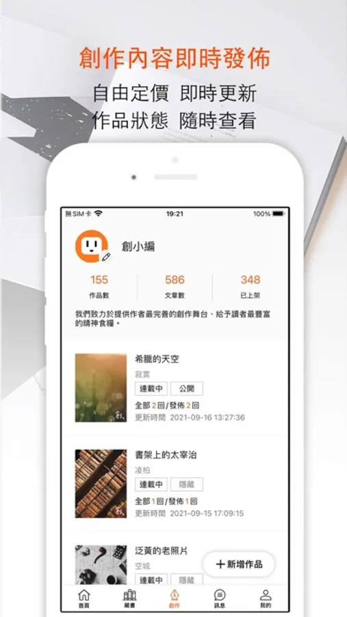 提供創作家最優質的創作空間。創作家可以自由設定作品篇章拆潤以獲取寫作收益。
