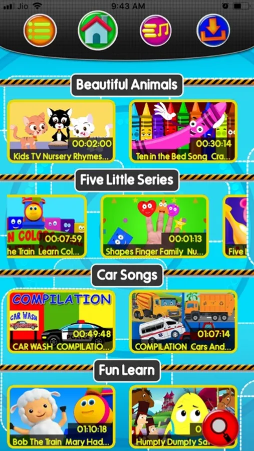 Upon launching the Nursery Rhymes World app, you the viewer will get a choice of selecting multiple content categories to choose your videos from. Each content category has multiple videos that will enrich the child's learning experience. These videos and the content showcased in these videos have been prepared under strict observation and guidelines of pre-school education experts who have many years of experience in this domain.