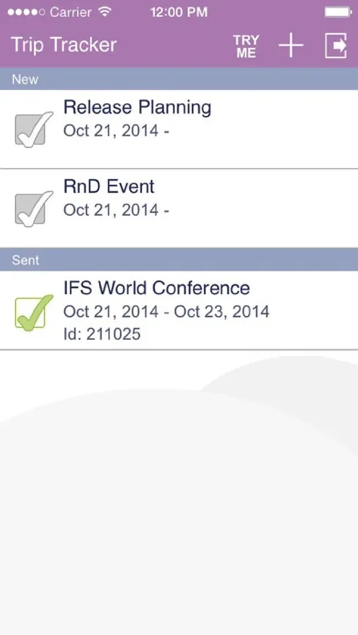 IFS Trip Tracker 10 can be used in Try Me mode with demo data without requiring a log on or network connection.
