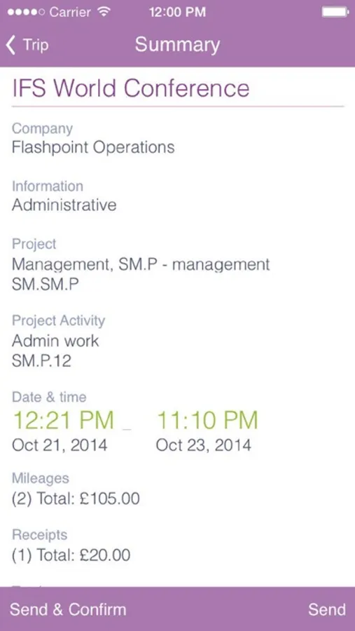 IFS Trip Tracker 10 makes it easy to track expenses, mileage, and deductions during your travels. The completed travel report is then sent to IFS Applications as an expense sheet for further processing and reimbursement.