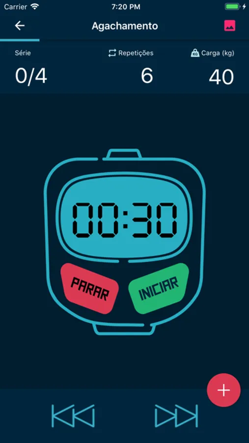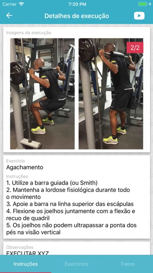 - Treinar com o nosso "Treinador Virtual" que te mostra como fazer cada exercício da ficha, cronometrando seu tempo de descanso e te mostrando a forma de execução através de imagens e vídeos.