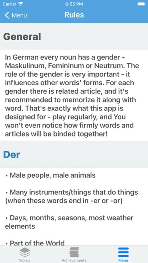 Yes, German is not an easy language to learn, but this app is here to help you! Following features are available: