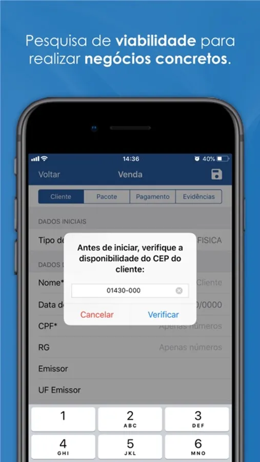 Por meio do aplicativo, os vendedores pesquisam a viabilidade de instalação, cadastram propostas de vendas, capturam imagens de documentos e assinatura digital, agilizando o processo de envio desses dados para validação das vendas. Tudo isso, de forma fácil e digital.
