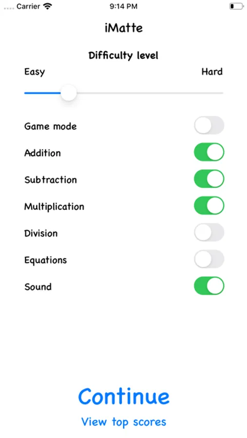 iMatte allows you to practise the basic Algebra operators: addition, subtraction, multiplication and division.