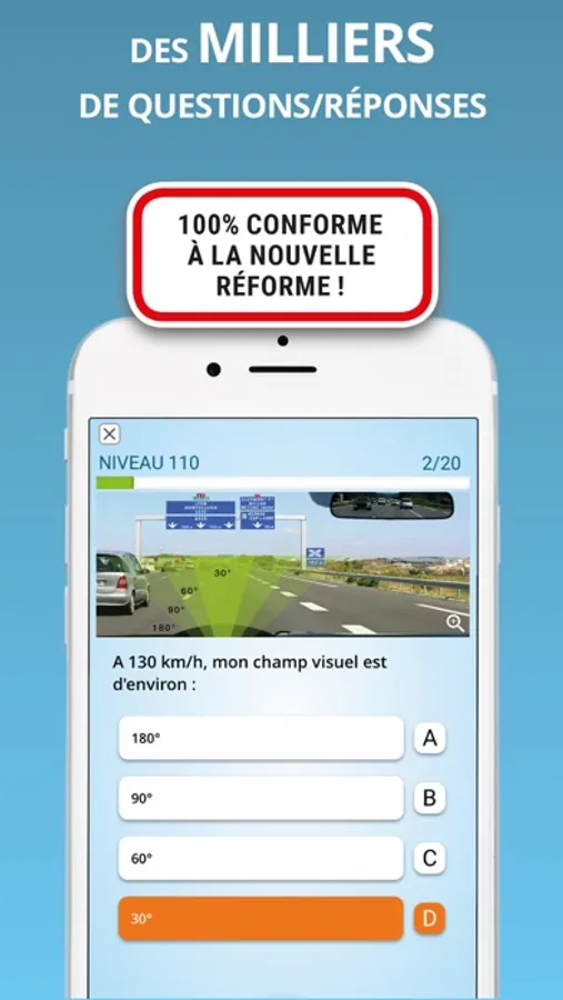• 3200 questions/réponses officielles rédigées par des moniteurs d’auto-école diplômés