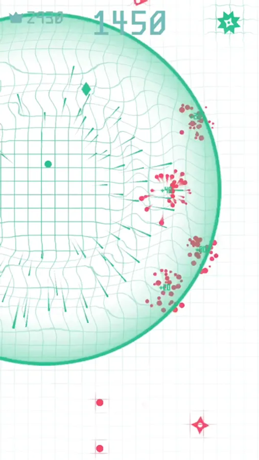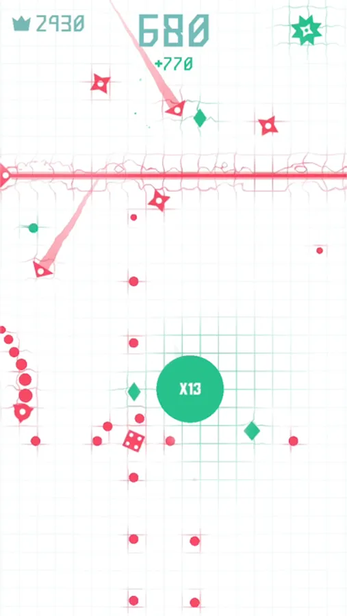 Dodge the infinite waves of red enemy creatures who enter your world. Collect green gems to increase in size and grow your score multiplier, release your finger to bank any points you collect before you grow too big and get hit!