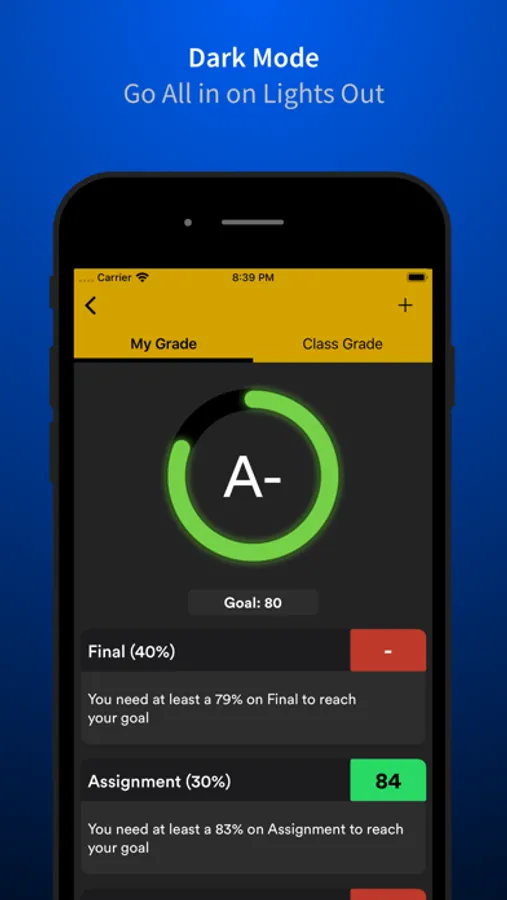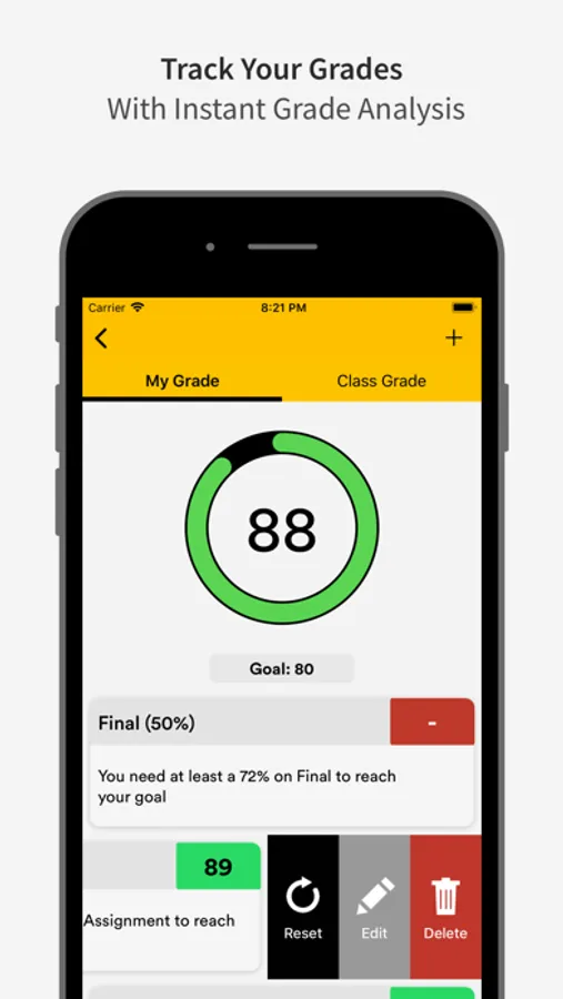 2) Grade analysis just for you: set your goals and get instant data on what grade you need for each component to reach those goals