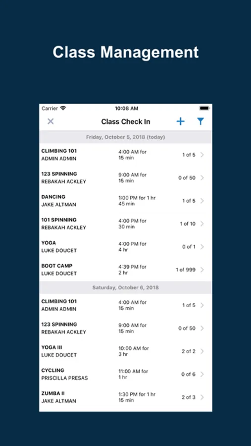 Receive regular updates for employee time sheets, front desk and class check ins and point of sale transactions, including a history of both purchases and returns. For easy record keeping, all reports can be exported as PDF or CSV files.