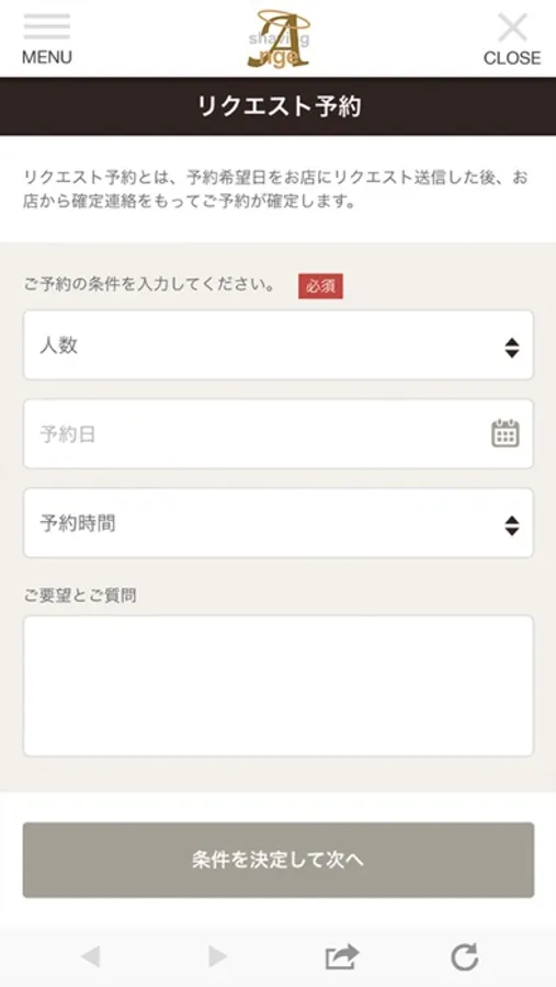 希望の日時を指定して送信するだけで予約を依頼できます。