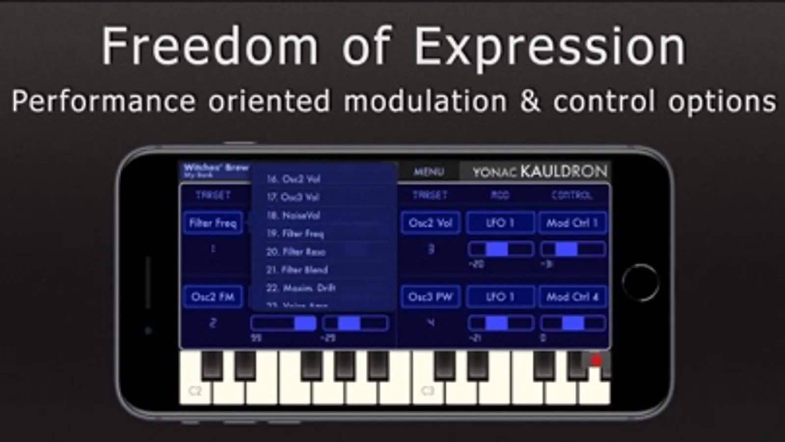 Powerful arp with both live & program modes; comprehensive MIDI features with effortless MIDI learn; over 900 presets; recording, sharing, IAA, Audiobus 3, Ableton Link — these are just some of the features brewing inside Yonac’s Kauldron.