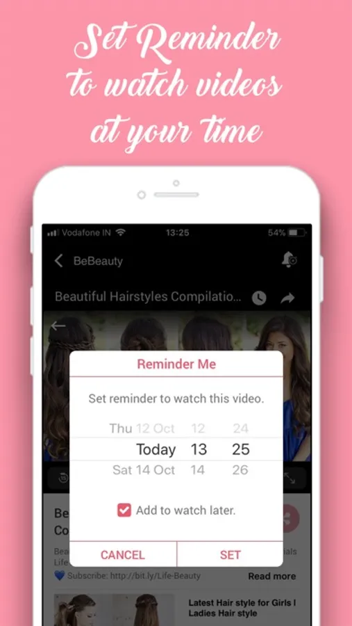 - "Never miss important videos": Users can 'set reminder' to watch any video tutorials in a specific time and they do not need to recall themselves because they will get notification at their set time