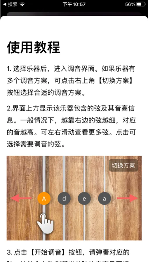 - 自动切换下一弦,当前弦调音成功后自动切换下一弦,无需手动切换。