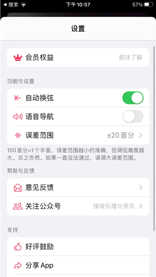 - 误差范围设置。你可以根据自己需要调整误差范围,误差越小,越准确,同时调音难度越高。