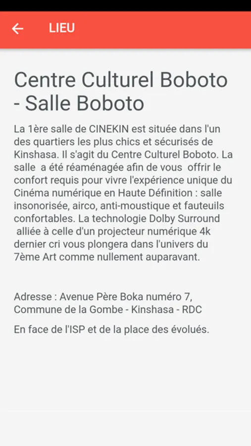 La philosophie de CINEKIN est d'offrir un nouveau loisir social en République Démocratique du Congo. Un véritables espace de vie, de confort, de culture, de rencontre et de divertissement qui se place au cœur de l’environnement urbain, dans des quartiers sécurisés, dynamiques et chaleureux. Afin de rendre le moment le plus agréable possible pour ses clients, CINEKIN propose des friandises et rafraichissements.
