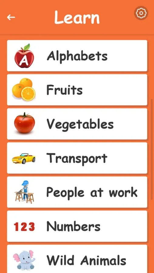 Your child can watch amazing images of Alphabets, Animals, Birds, Flowers and many more. This app is very easy to use for children. Just open the Alphabet category and start watching images and listen to the sound to reinforce the learning.