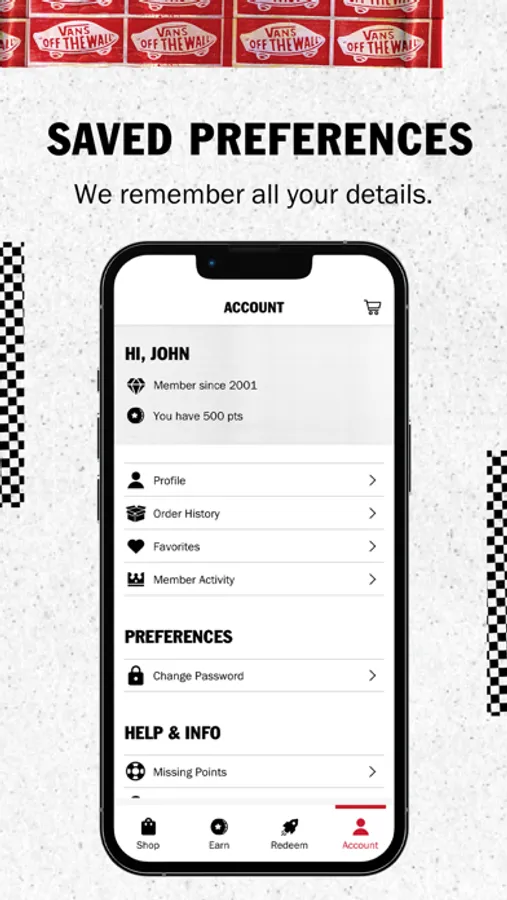 Download the app to join the Vans Family. You'll get access to the Off The Wall culture with perks like member exclusives, in-app shopping, giveaways and rewards - all in the palm of your hand.