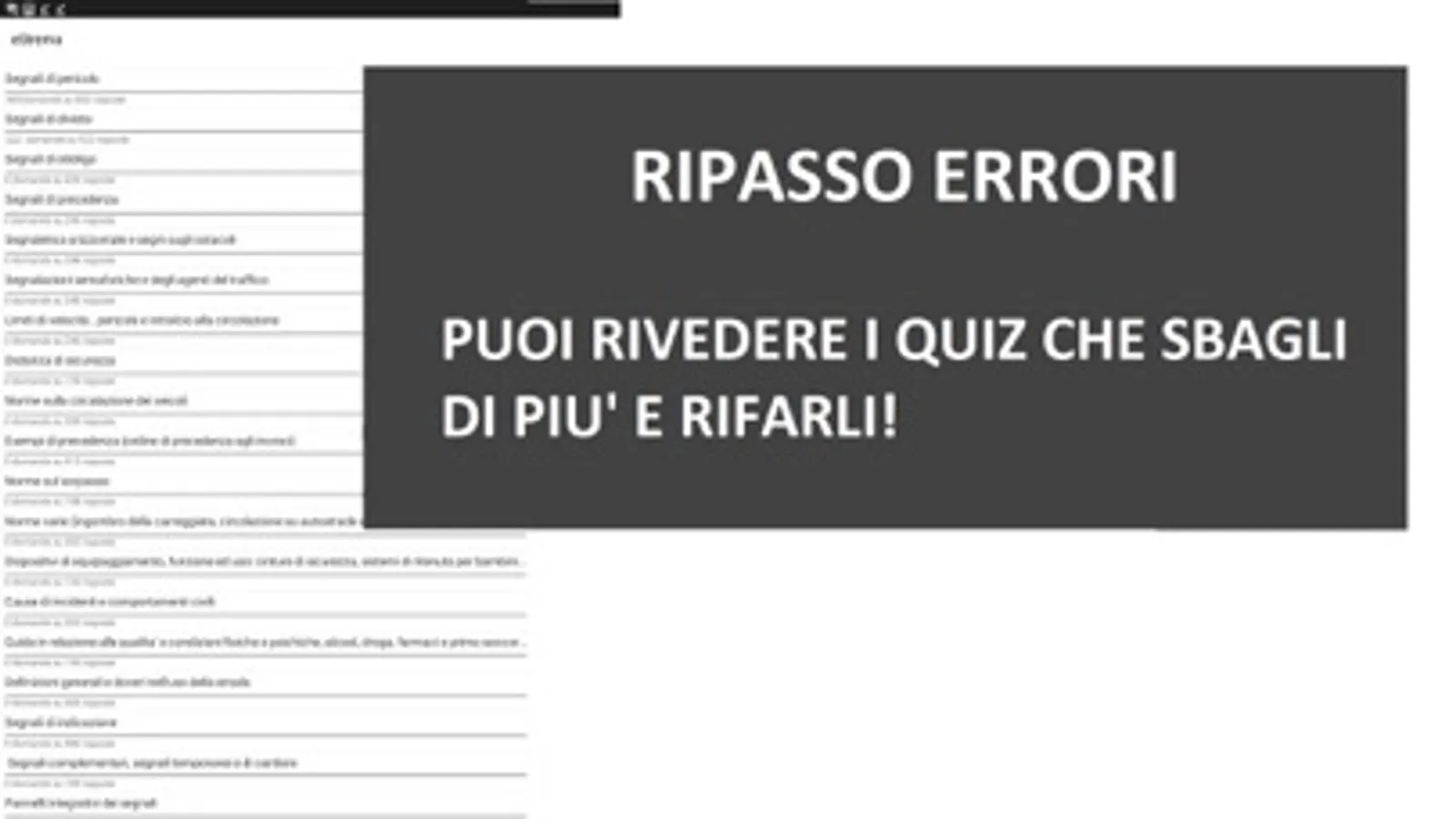 - RIPASSO ERRORI: esercitati solo sui quiz della patente che sbagli di più