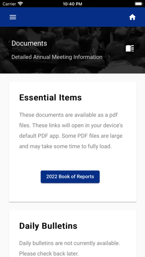 This app contains schedules, reports, maps, and other information useful to those in attendance.