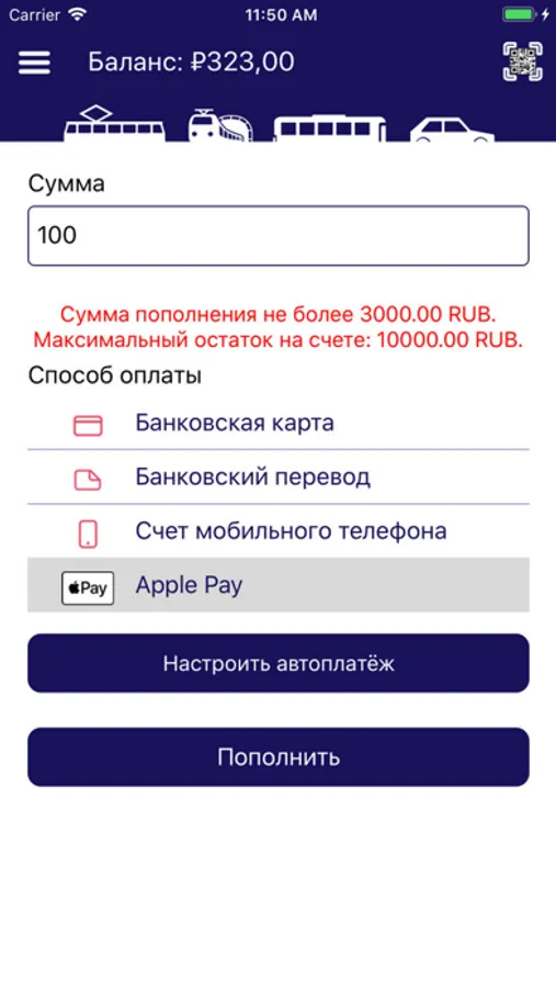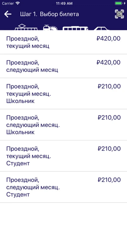 Приложение обеспечивает пользователю возможность оплаты проезда на различных видах транспорта при помощи различных идентификаторов, включая, но не ограничиваясь: