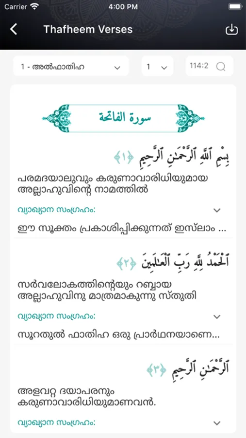 Translation and Commentry of the Quran from Maulana Abul A'la Maududi's Thafheemul Quran in Malayalam and English, Complete Audio Edition of Thafheemul Quran in Malayalam