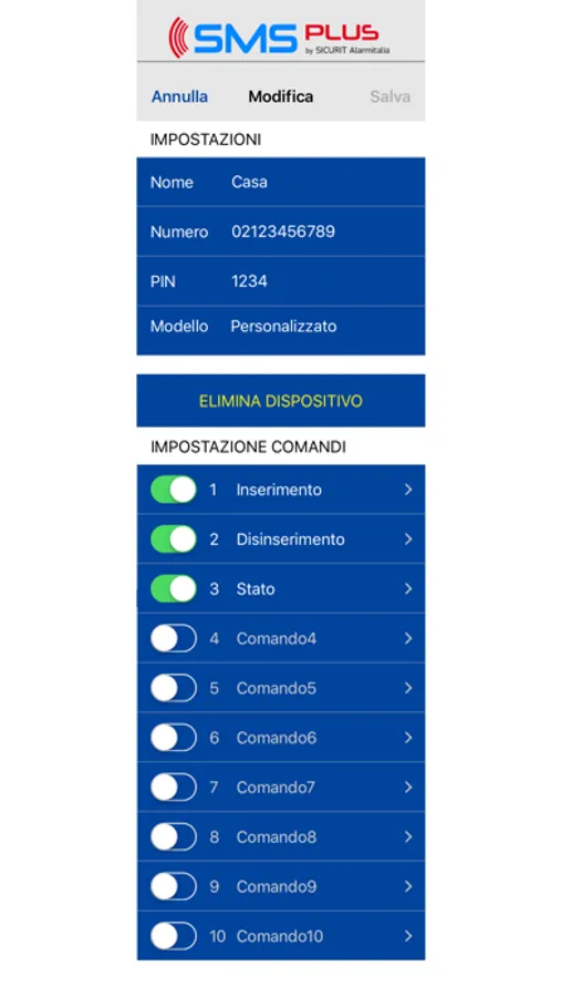 2) Aggiungere fino a 10 dispositivi diversi, con un massimo di 10 operazioni/comandi per dispositivo.