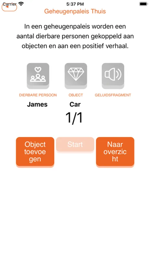 Using the MemoryHome app you can take people who are coping with Alzheimer’s or dementia on a walk through their familiar environment (their house, their nursing home etc.). While walking you invite them to tell positive stories about their loved ones, as you pass fixed objects on your trajectory to which these cherished persons are linked. The mobile app supports this process in a simple manner.