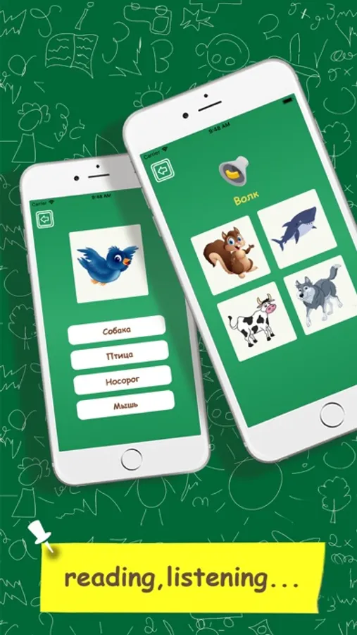 • 500 words with images and audio ( native voice ) , to study vocabulary.